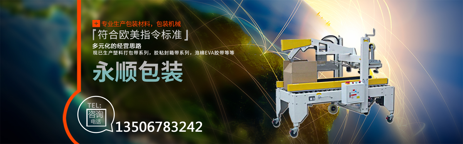 慈溪市永順包裝材料有限公司是一家專業(yè)生產(chǎn)包裝材料,包裝機械的廠家。公司自創(chuàng)建以來,經(jīng)過不斷的努力,憑借優(yōu)異的產(chǎn)品質(zhì)量,良好的售后服務(wù),在市場上取得了突飛猛進的業(yè)績,獲得了客戶的廣泛認可與贊譽。公司本著多元化的經(jīng)營思路,現(xiàn)已生產(chǎn)塑料打包帶系列,膠粘封箱帶系列,泡棉EVA膠帶,鋁箔膠帶、美紋膠帶、牛皮膠帶、文具膠帶。全自動打包機,收縮包裝機,移印機,真空包裝機,自動封口機,纏繞膜裹包機,等各種包裝機械(無人化全自動包裝機械)。其中塑料打包帶、粘膠帶已全面通過SGS認證,符合歐美指令標準。